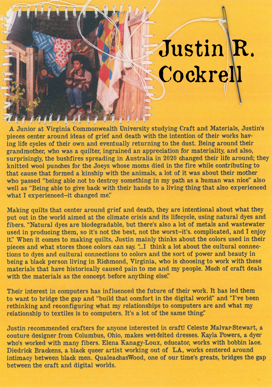 We want you to learn about the art that people make and the artists themselves.