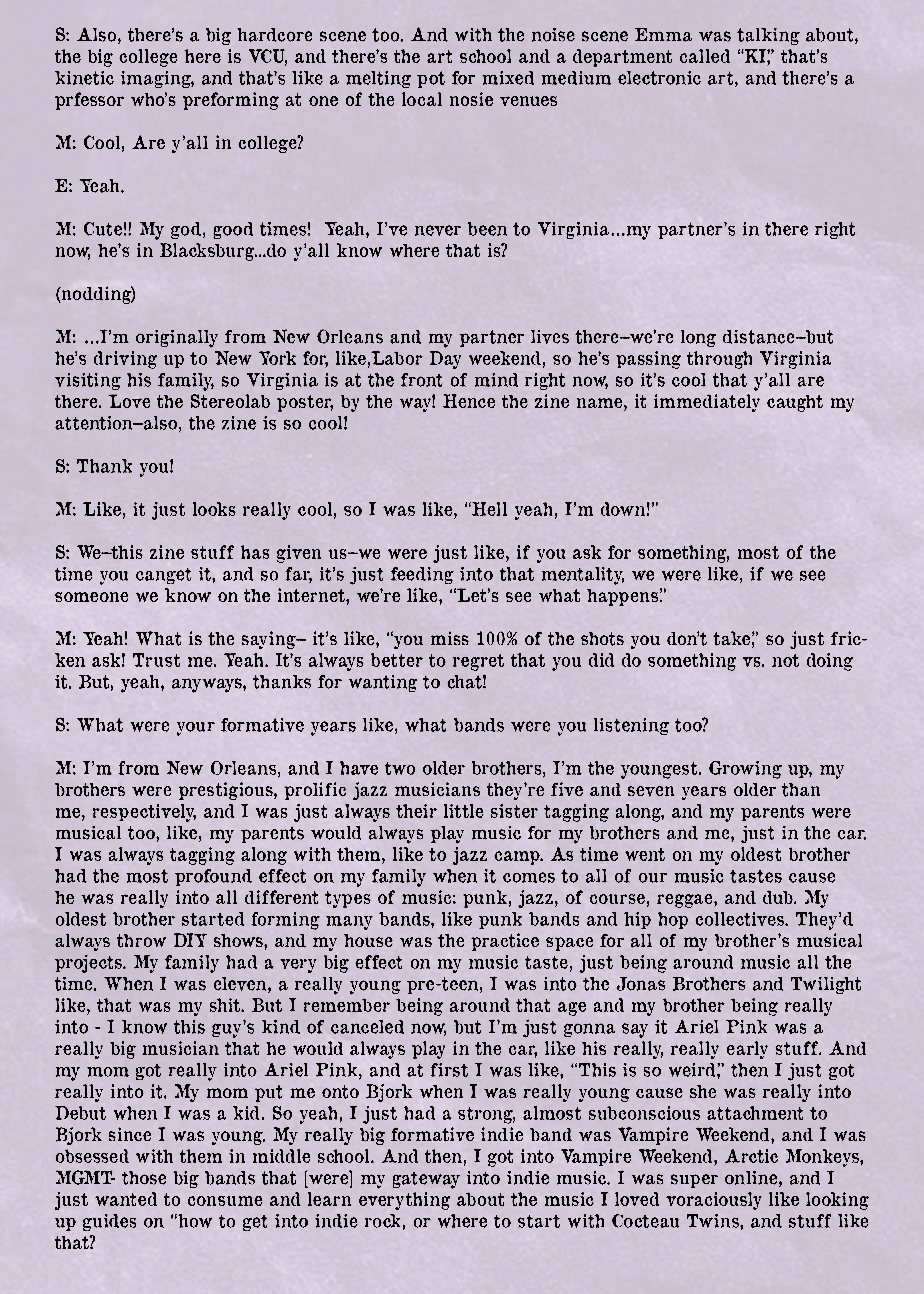 We are a zine about the Richmond music scene and value independence, experimentation, and community.